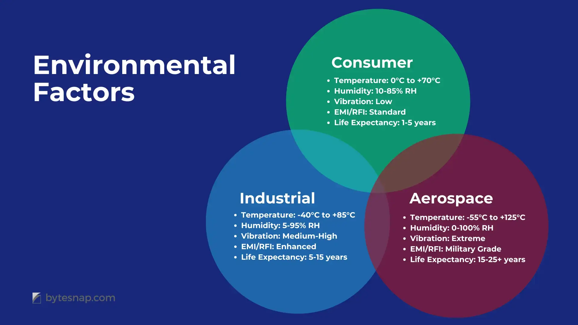 Although environmental considerations, reliability requirements, and cost impact the design process, their relative importance shifts depending on the intended application. Consumer electronics may prioritise cost-effectiveness while maintaining essential functionality, industrial applications demand robust reliability in challenging environments, and aerospace applications require uncompromising performance under extreme conditions.